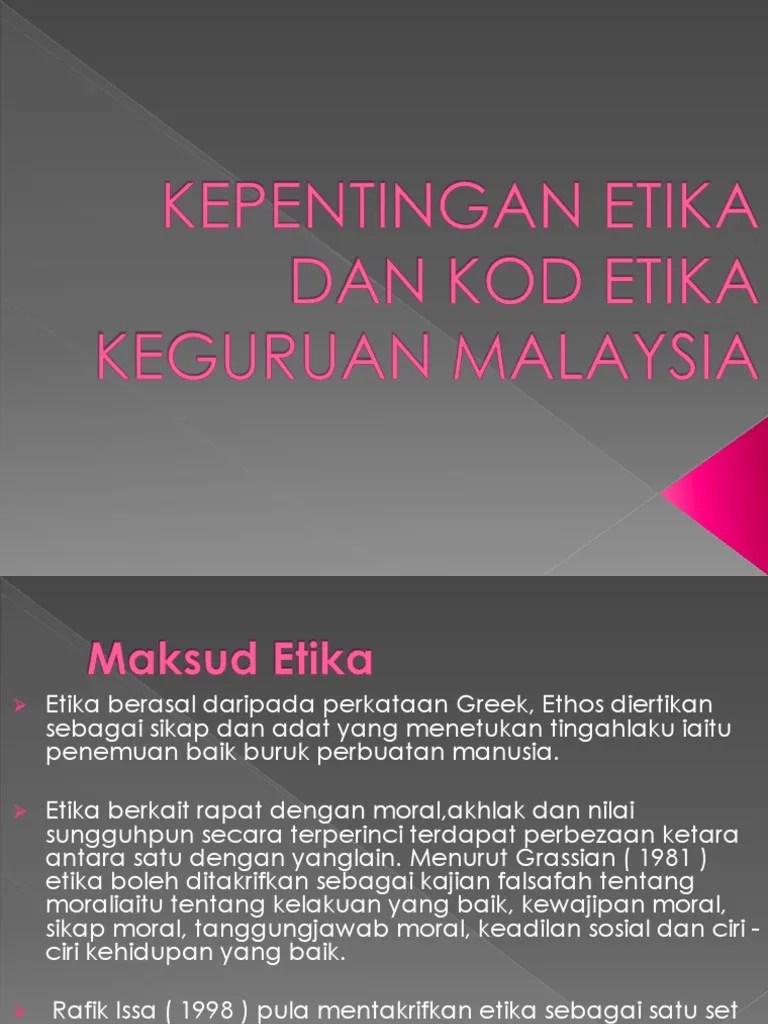 Bab3 Etika Perguruan Pdf Document from reader016.staticloud.net Report kod etika profesion perguruan. Kod etika msw etika msw.pdfآ tujuan kod etika kerja sosial perubatan 6 3. Pedoman kode etik akan menjaga kepercayaan pelanggan pada produk dan layanan yang disediakan oleh perusahaan, hal ini kami meminta seluruh karyawan gar untuk mematuhi kode etik ini. Kode etik penyelenggara pemilu harus berlandaskan. Kod ini disediakan dalam bahasa inggeris dan bahasa malaysia. Kod etika guru keterangan i.murid guru bertanggungjawab dalam membangunkan modal insan (murid) agar dapat menjadi insan yang cemerlang menerusi kod etika, guru dapat meningkatkan lagi imej profesion perguruan secara hitam putih dan rasmi. Download as doc, pdf, txt or read online from scribd. Kod etika profesion perguruan malaysia.