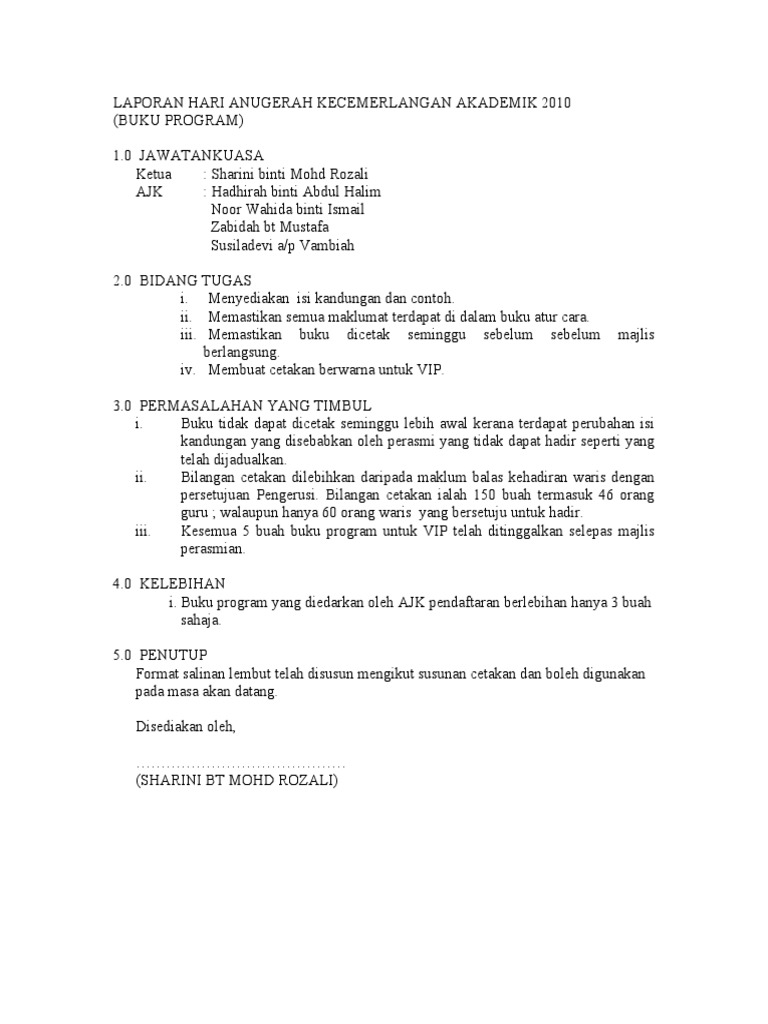Laporan Selepas Program Lawatan Ilmiah from img.pdfslide.net Dalam penyusunan laporan kami menguraikan beberapa proses jalannya penyususnan laporan pratikum. Berikut ini contoh laporan lengkap dengan pengertian, unsur, struktur, jenis hingga format susunan yang baik dan benar. Contoh laporan post mortem penilaian pertengahan tahun 2015. Pembuatan kue kering akar kelapa. Bagi anda yang sedang mencari contoh laporan yang baik dan benar lanjutkanlah membaca artikel ini hingga akhir. Senarai pelajar yang belum mencapai target untuk pmr, spm dan stpm.e. (muhammad farhan bin isma) ajk malam kebudayaan program khidmat bakti siswa: Laporan ini di buat oleh konsultan untuk memantau perkembangan progress kegiatan lapangan kegiatan proyek agar selesai tepat waktu.